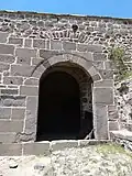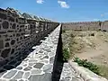Inside the castle, to the left of the entrance and adjacent to the north-eastern wall, there is a pointed arch fountain with a water reservoir. A second fountain has been added next it. Only the traces of the foundations of the mosque and the Turkish bath are visible today, but the remains of stone pedestal and brick shoes have survived from the mosque's minaret, which was situated on the castle wall.[1]