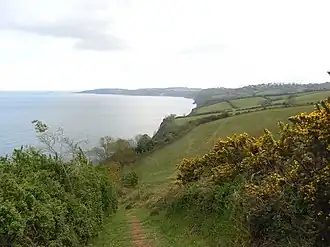 Babbacombe Bay is a South-East Devon shallow, wide, continuation of the main sweep of Lyme Bay[1] which, in turn, to the east is the western end of the Jurassic Coast (mainly in Dorset)[2] in England, UK. It faces east towards the parent, notably large bay of the English Channel, weakly sheltered from large tides from the east but much so from Atlantic tides, currents and storms from the west.[2] As a sub-bay it covers about 7.2 km (4.5 mi). It is bounded by: