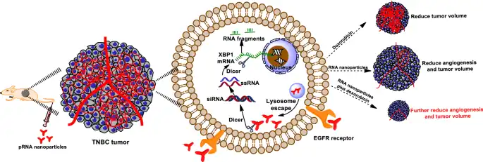 - ^ a b c d Zhang, Long; Mu, Chaofeng; Zhang, Tinghong; Yang, Dejun; Wang, Chenou; Chen, Qiong; Tang, Lin; Fan, Luhui; Liu, Cong; Shen, Jianliang; Li, Huaqiong (2021-01-07). "Development of targeted therapy therapeutics to sensitize triple-negative breast cancer chemosensitivity utilizing bacteriophage phi29 derived packaging RNA". Journal of Nanobiotechnology. 19 (1): 13. doi:10.1186/s12951-020-00758-4. ISSN 1477-3155. PMC 7792131. PMID 33413427.