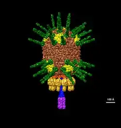 - ^ a b Simpson, Alan A.; Tao, Yizhi; Leiman, Petr G.; Badasso, Mohammed O.; He, Yongning; Jardine, Paul J.; Olson, Norman H.; Morais, Marc C.; Grimes, Shelley; Anderson, Dwight L.; Baker, Timothy S.; Rossmann, Michael G. (2000). "Structure of the bacteriophage φ29 DNA packaging motor". Nature. 408 (6813): 745–750. Bibcode:2000Natur.408..745S. doi:10.1038/35047129. ISSN 1476-4687. PMC 4151180. PMID 11130079.