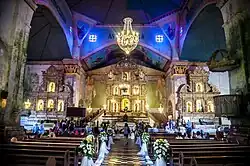 Baclayon is known for its historic Catholic church, declared a National Cultural Treasure in 1995 because it is considered the best preserved of its kind in the region. Its first structure was built in 1595, but the current building is from 1724 and is of Spanish Colonial architecture. The church includes a small museum, with relics dating back to the early 16th century, and adjoining 21-metre (69 ft) high bell tower. Nearby are centuries-old stone buildings like the hermita, and elementary school, as well as the historic public marketplace, a Spanish-era building with giant stone columns supporting the roof.[6][27] In 2013, the church and bell tower were severely damaged by the 2013 Bohol earthquake.