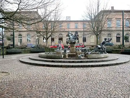 In 1913, the Bad Durkheim–Ludwigshafen-Oggersheim railway was opened by Rhein-Haardt Bahn GmbH, which begins on the station forecourt. Between Ludwigshafen-Oggersheim and Bad Durkheim, the line, which was authorised as a railway, runs in Bad Dürkheim as a tram on grooved rails.