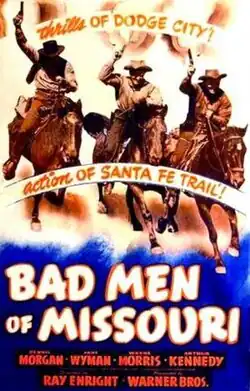 Bad Men of Missouri is a 1941 American western film directed by Ray Enright and written by Charles Grayson. The film stars Dennis Morgan, Jane Wyman, Wayne Morris and Arthur Kennedy.[1][2] The film was released by Warner Bros. on July 26, 1941.