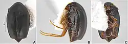 Adults reach a length of about 1.08–1.22 mm and have a dark brown body.