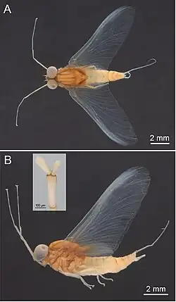 - ^ Godunko, Roman J.; Sroka, Pavel (2024-01-18). "A new mayfly subfamily sheds light on the early evolution and Pangean origin of Baetiscidae (Insecta: Ephemeroptera)". Scientific Reports. 14 (1). doi:10.1038/s41598-024-51176-7. ISSN 2045-2322. PMC 10796926. PMID 38238366.