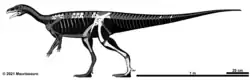 | Skeletal remains of Bagualosaurus agudoensis (known in white/light grey and unknown in dark grey). | |