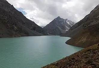 Khūkūsh Lake (Urdu: کھوکوش جھیل; Khowar: کھوکوش چھت), also known as Baha Lake,[1] is an alpine lake situated in the Gupis Tehsil of Gupis-Yasin District in Gilgit Baltistan, the northernmost territory of Pakistan.[2] With a surface area of 2.081 km2 (0.803 sq mi) and a calculated volume of 26,000 m3 (920,000 cu ft), it is the third largest lake in northern Pakistan by surface area, after the Attabad and Karambar lakes.[2][3]