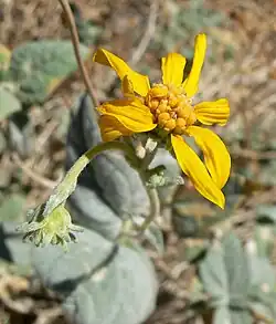 Bahiopsis reticulata is a species of flowering plant in the family Asteraceae known by the common names netvein goldeneye and Death Valley goldeneye. It is native to the Mojave Desert of California and Nevada, where it grows in several types of dry desert habitat.[3][4] Many of the populations are inside Death Valley National Park.[5]