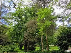 The arboretum was created by financier Frank Bailey, who used many rare trees and plantings.[5] He purchased the property between 1911/1912 from Joseph R. Clark, a former president of the Board of aldermen of Brooklyn.[6][4] Some of the first staff he hired after the purchase of the property was a gardener and gardening assistants. Bailey selected the trees and shrubs for the property, directed where to plant them, trimmed and pruned the tree and helped with transplanting.[7] During the time period of 1916-1920, Bailey imported trees, shrubs and ornamentals from France.[4]
