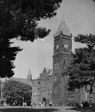 Called "Old Main" until 1948, when it was renamed to honor Reverend George P. Baity, it served as the only building on the Missouri Valley College campus for six years. During that time it served every purpose, providing the space for classrooms, offices, laboratories, dormitories, a museum, kitchen, cafeteria, chapel, library, conference rooms, and two gymnasiums for men and women. Some modifications have been made to the original building such as the removal of the upper portion of the bell tower in 1959.[3] Today, Baity hall continues to serve as classroom and office space for faculty and administration of Missouri Valley College.[4] The former chapel has been converted into the Learning Center which serves as a study, test taking and tutoring area for students.[5]