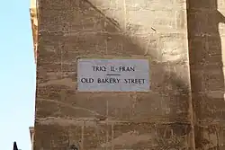 During the French occupation of Malta, the bakery was used to produce bread for the French garrison, and it was heavily guarded during the blockade of 1798–1800.[28] At this point, the street where the bakery was located, originally called Strada San Giovanni Battista,[29] was renamed Rue des Fours after the bakery.[30] It was later known as Strada Forni in Italian during the early British period,[29] and since 1926 it has been called Old Bakery Street. It is known as Triq il-Fran or Triq l-Ifran in Maltese, but it is still commonly called Strada Forni by Valletta residents.[31][32] This means that the bakery gives the name to a main street in the capital Valletta.[8]