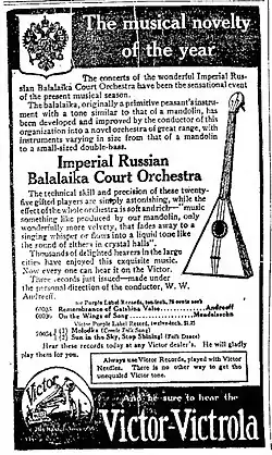 1911 advertisement for the Imperial Russian Balalaika Orchestra and Victor Records