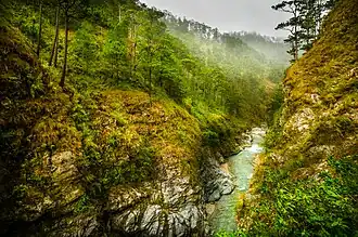 The Park belongs to the Luzon Biogeographic Region, a unique center of endemism in Luzon. It is composed of two mountain ranges within the Cordillera Central with numerous rivers and creeks all draining towards the Saltan River. Mount Sapocoy is the highest peak at 2,456 m. It is located at the western boundary of the park overlooking the Ilocos and Cagayan Valley. The lowest point in the park, with an elevation of 700 m, is at Balbalan in the eastern portion.[4]