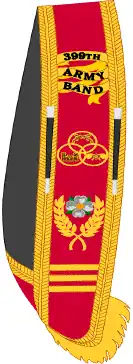 A drum major of the United States' III Marine Expeditionary Forces Band is pictured wearing a baldric in 2019