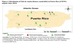 Banara vanderbiltii is a rare species of plant in the willow family known by the common name Palo de Ramón. It is originates from Puerto Rico in the hills of Rio Lajas, and the east peak of "Tetas de Cayey" mountains in Salinas, where there are fewer than 20 known individuals left in the wild.[3] At the time it was listed as an endangered species of the United States in 1987, there were only six plants remaining.[4]