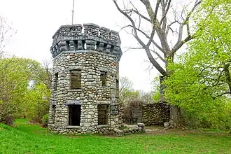 Bancroft's castle was built by General William Bancroft in 1906 atop Gibbet Hill in Groton, Massachusetts. Since 2000, the "castle" and trails became part of Groton's protected open space and was opened to the public.[1]