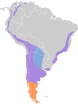 - S. l. bifasciata (Gould, 1837) - Chile, western Argentina