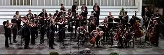 BandArt is an orchestra without the conductor's usual figure on the stage, so it requires a deep interaction and hard team work by its members.[3] They keep a special attention and that’s when “with side by side work upper bounds are achieved".[4] This leads to play on numerous occasions standing up, generating a feel and energy close to rock and roll and establishing strong emotional bonds with the public.[5] This can be appreciated by attending any of their concerts and also in the documentary BandArt, filmed by Iván Valdés. It has been said that BandArt "is an example of the rejuvenation of classical music in its symphonic version and develops another way of playing".[6]
