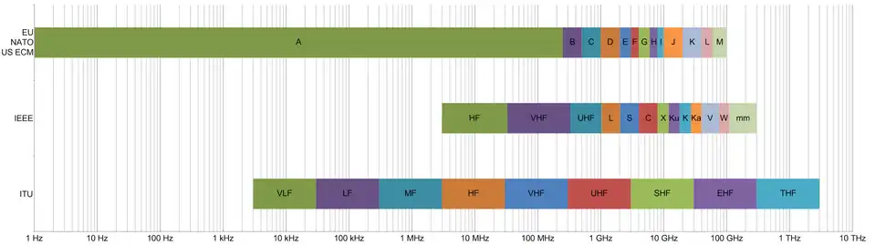 - ^ "Nomenclature of the frequency and wavelength bands used in telecommunications" (PDF). International Telecommunications Union. Geneva, Switzerland. 2015. Retrieved 7 April 2023.