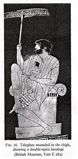 Achilles bandaging Patroclus. Tondo of an Attic red-figure kylix, ca. 500 BC, from Vulci.