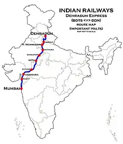 2. ^ "19019/Mumbai Bandra (T.)–Dehradun Express". India Rail Info.