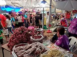 Bang Nam Phueng Floating Market (Thai: ตลาดน้ำบางน้ำผึ้ง, pronounced [tā.làːt ná(ː)m bāːŋ ná(ː)m pʰɯ̂ŋ]) is in Bang Nam Phueng Subdistrict, Phra Pradaeng District, Samut Prakan Province adjacent to Wat Bang Nam Phueng Nai temple and considered as part of Bang Kachao, a good atmosphere area on bend of the Chao Phraya River. The market was inaugurated in 2004 by the local subdistrict authority to help locals move an oversupply of agricultural products. Its vendors limited to people from the community. The market is on a canal surrounded by a residential neighborhood. Products include commercial crops such as fruits and sweets, noodles, processed food, sea shells, dried shrimp, pickled shrimp, desserts, grain cakes, and fruit.[4][5][6]