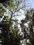 Most common tree species are pedunculate oak, red maple, silver maple and box elder, but there are many others as well. There are numerous wildflowers on the forest floor, including wood avens, violets, strawberries, garlic mustard, deadnettles etc.
