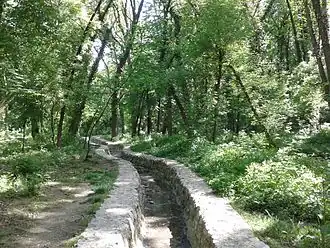 Banjica stream flowed through the entire area. Its spring was located somewhere in the Suburb of Queen Maria, or modern Upper Voždovac, between the Voždovac Church and present Banjica settlement. In an effort to create the forested belt around the Belgrade, the forest, initially named Banjica Forest, was planted from 1948 to 1950[2][6] (Šumice Forest was created as a part of the same project).