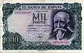 1000 | Commemorative issue -Centennial of Banco de España becoming the only Issuing Bank (1874-1974). José Echegaray at right; Bank of Spain in Madrid on the reverse | 17 September 1971 | ||