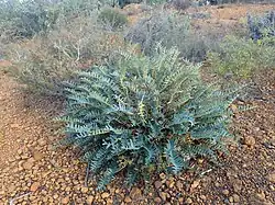 The species is found in the Stirling Range in Western Australia, ranging east to Ongerup and Boxwood Hill and south to Manypeaks. There are outlying populations at Lort River and Cape Arid. It grows in flat areas on clay-loam or sandy loam with a yearly rainfall of 400 to 800 millimetres (16 to 31 in).[4]