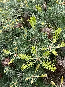 Banksia vincentia is a shrub that grows in a small location in southern New South Wales. It belongs to the Banksia spinulosa species complex and has affinities to Banksia neoanglica, found several hundred kilometres to the north.[2]