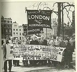 She organized the Peace Pilgrimage in 1962, accompanying the two hibakusha around the world as they shared their personal experiences of atomic war, appealing to world leaders to ban nuclear weapons. Over five months, the three Peace Pilgrims traveled through 13 countries, including the Soviet Union, appealing for nuclear disarmament and receiving a warm and open reception from public leaders, churches, schools and the media. During their six weeks in the United States, they spoke to 187 groups and met with many leaders in Washington D.C. and at the United Nations. In Geneva the three attended the 1962 Disarmament Conference.