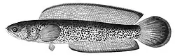 The Barca snakehead (Channa barca) is a rare species of snakehead. It is endemic to the upper Brahmaputra River basin in northeastern India and Bangladesh.[2][3] Records from Nepal are of doubtful validity.[1] Overall it has been assessed as data deficient by the IUCN,[1] and in 2014 it was assessed as critically endangered in Bangladesh by the IUCN.[3] In Assam, it is locally known as cheng garaka or garaka cheng.
