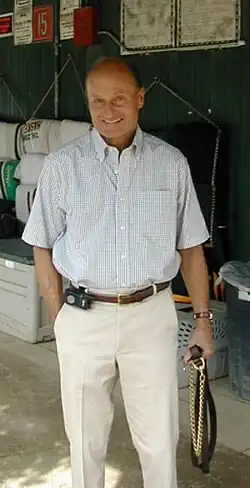 Barclay Tagg (born December 30, 1937, in Lancaster, Pennsylvania) is an American Thoroughbred horse trainer. Tagg graduated from Pennsylvania State University with a degree in Animal Husbandry in 1961. Tagg is best known for conditioning Kentucky Derby, Preakness Stakes, and Jockey Club Gold Cup winner Funny Cide.[1] Horses in Tagg's stable have included Tiz the Law, Showing Up, and Nobiz Like Shobiz.