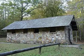 The Bard Springs Bathhouse is a historic recreational support facility in Ouachita National Forest. It is located at the Bard Springs recreation site, southeast of Mena and north of Athens in Polk County, off County Road 82 and Forest Road 106 on the banks of Blaylock Creek. It is a single story rustic stone structure, with entrances at either end into open areas for changing. The interior is lit by skylights in the roof. It was built in 1936 by a crew of the Civilian Conservation Corps, and is one of four surviving CCC structures (the others are two dams and a picnic shelter) in the immediate area.[2]