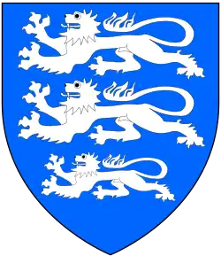 Arms of de Camville: Azure, three lions passant argent[1]