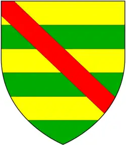 The first creation was for Sir Michael Poynings,[1] who was summoned to Parliament from 20 November 1348 to 24 February 1368 by writs directed Michaeli de Ponynges, 'whereby he is held to have become Lord Poynings'.[2] On the death of the fourth baron in 1446, his granddaughter, Eleanor Poynings, who had married Sir Henry Percy, later 3rd Earl of Northumberland, became de jure suo jure Baroness Poynings.[3] Percy was summoned to Parliament on her behalf from 14 December 1446 to 26 May 1455 by writs directed Henrico de Percy, chivaler, domino de Poynings. The 3rd Earl was slain at the Battle of Towton on 29 March 1461. His widow, Eleanor, Baroness Poynings, died in February 1484. Their son, Henry Percy, 4th Earl of Northumberland, succeeded to the barony, and since that time the barony of Poynings 'has followed the devolutions of the barony of Percy'.[3] It was attainted in 1571.[4]
