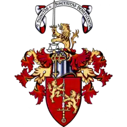 The crest sits atop a helm appropriate to the Dignity of a Baron in the Baronage of Scotland