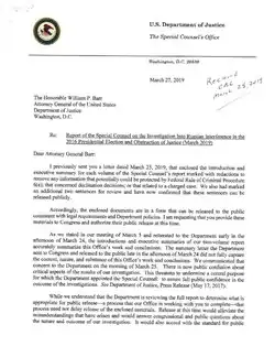 - ^ "Special Counsel Mueller's letter to Attorney General Barr". The Washington Post. May 1, 2019. Archived from the original on February 15, 2021. Retrieved May 2, 2019.