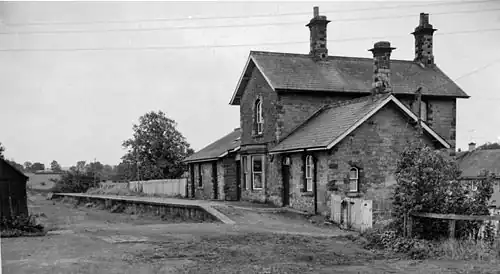 Barrasford was served by Barrasford railway station on the Border Counties Railway which linked the Newcastle and Carlisle Railway, near Hexham, with the Border Union Railway at Riccarton Junction. The first section of the route was opened between Hexham and Chollerford in 1858, and the remainder in 1862.[2] The line was closed to passengers by British Railways in 1956. Part of the line is now beneath the surface of Kielder Water.