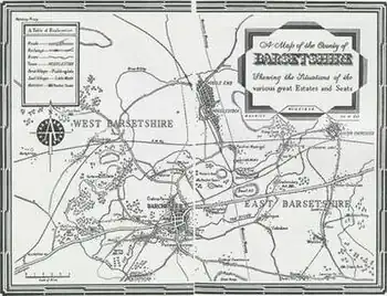 According to E. A. Freeman, Trollope conceded to him that Barset was in origin Somerset, although Barchester itself was primarily inspired by Winchester.[1] Other West Country counties such as Dorset also contributed, and Gatherum Castle, for example, was imported from elsewhere, but important elements such as Plumstead Episcopi were drawn directly from Somerset life, in this case Huish Episcopi.[2] In sum, Barset was (in Trollope's own words) "a little bit of England which I have myself created".[3]