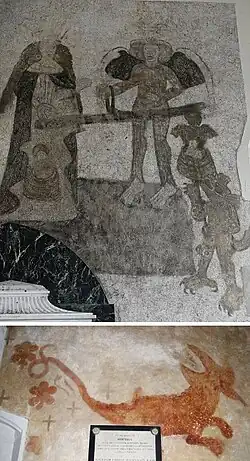 The church is also known for its 15th-century wall-paintings whose fragments include depictions of St Christopher, St Michael weighing souls, and St George and the Dragon. There is also a memorial to Benjamin Keene (1753–1837) of Westoe Hall who sat in the House of Commons from 1776-1784.