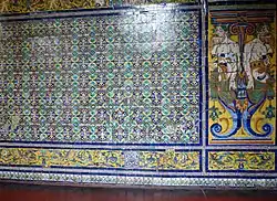 Part of the Sevillian azulejos (dating to 1642)[13][14] of the main cloister, photo of 2011.