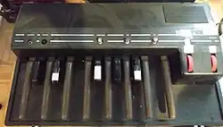 An early and popular bass pedal device was the Moog Taurus. Moog called this instrument a "Pedal Synthesizer" in their literature, and explicitly pointed out that its five-octave range made it "more than a bass instrument". [1]. Despite these efforts, most players used them for basslines, and the term bass pedals stuck. The Taurus I and II models are no longer in production, but they are prized as vintage instruments. In 2010, Moog introduced a new model, the Taurus III, in a limited run of 1000 units.