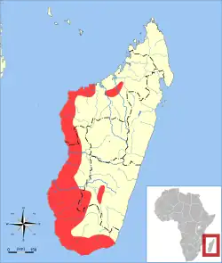 This is a terrestrial species, found primarily in xeric habitats such as dry deciduous forests in the northwest and spiny forests in the south.[2]