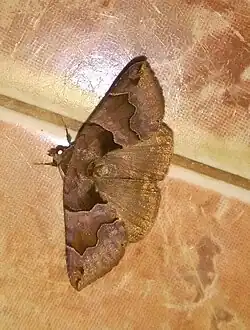 Its wingspan is about 42 mm. Similar to Bastilla arcuata, differs in antemedial line being curved and with some dark diffusion inside it. Some dark suffusion can be seen instead of the dark patch inside the postmedial line, which has two slight angles in it beyond the cell. The apical streak slight. There is an indistinct dentate submarginal line present. Hindwings with pale cilia below the apex.[2]