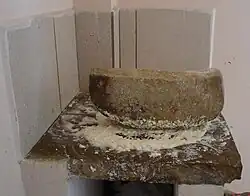 It is also used in India in a large number of households.[3] It is known there as "sil-batta" in Hindi with sil referring to flat stone and batta referring to a cylindrical grinding stone. It is known as pata-varvanta in Marathi[4] and used in the state of Maharashtra. It is known as ammi kallu in Tamil[5] and Malayalam.[6] It is known as "shil nora" in Bengali and is basically found to be used in almost every household in West Bengal. In Odisha, it is called sila puaa where it is also worshipped as Bhu Devi or mother Earth during traditional Odia weddings and the Raja festival. It is traditionally used to grind spices and lentils in the states of Tamil Nadu and Kerala. These grinding stones are primarily used to prepare chutney and spice mixes for cooking and occasional use including grinding soaked lentils in preparation for dosas, vadas, or papadum.