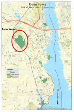 Bates Woods is approximately 85 acres of historic woodland trails around wetlands and ancient rock ledges in northwest New London, Connecticut.[1] The park accounts for nearly half of the city's 221 acres of public open space, or about 6 percent of New London's total land area.[2]