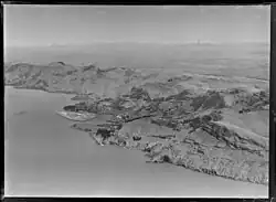 ![]() Lyttelton Harbour with Battery Point visible at the extreme right of the foreground | |