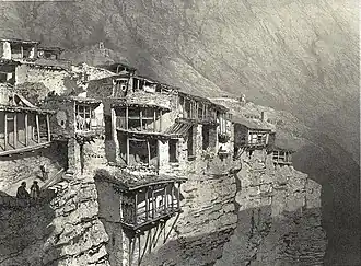 On 30 May 1839, Russian troops approached the village of Argvani by noon. Shamil thoroughly fortified the village. The village itself consisted of 500 thick-walled stone houses located in six tiers along the slopes of the mountain. Each house was like a separate fortress that could not be taken without an assault. All streets were fortified with stone blockages. The aul itself had natural protection, any mistake when moving along narrow paths could cost a lot, falling into the abyss.[3]
